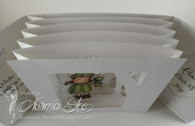 I've turned the back panel into another frame inserted with a piece of vellum paper. My intention was to position a lit LED tea candle behind the back of the card and...