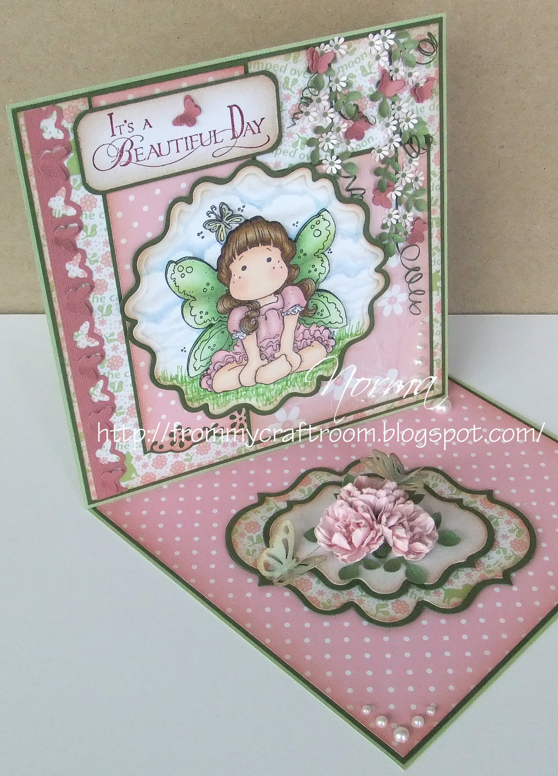 I was trying to stay with the 2-Tilda theme, so I left the left easel image-less. And also I was rushing to finish this card...LOL. Hmm...I think I will add some punched butterflies here and there.