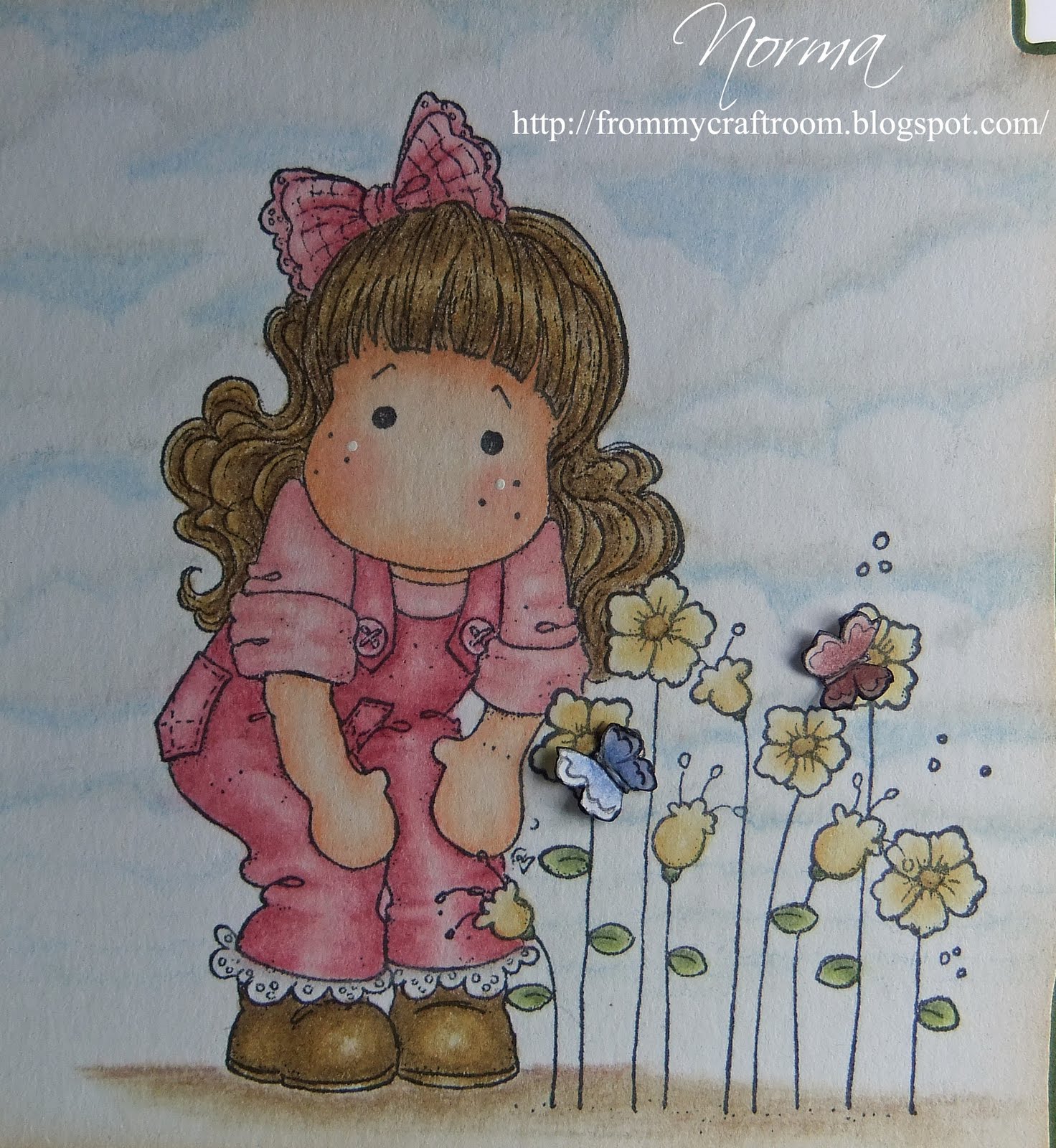 This adorable Magnolia image that I have used for this card is of Running Tilda and she is from the Butterfly Dreams Collection 2011. This stamp is available from Magnolia-licious on-line store.