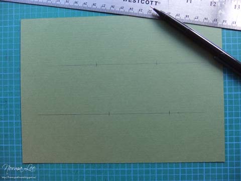 Using your ruler and craft knife, trim away about 1/16" for the outside paper edges and both sides of every drawn line, a shown below.