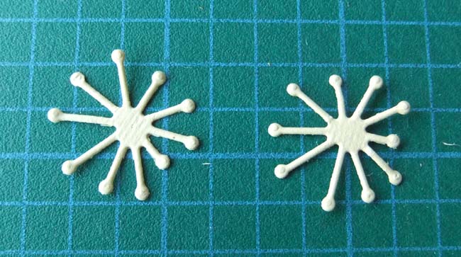 Glue the 2 punched stamen pieces together as shown, offsetting the fingers or whatever you call them.